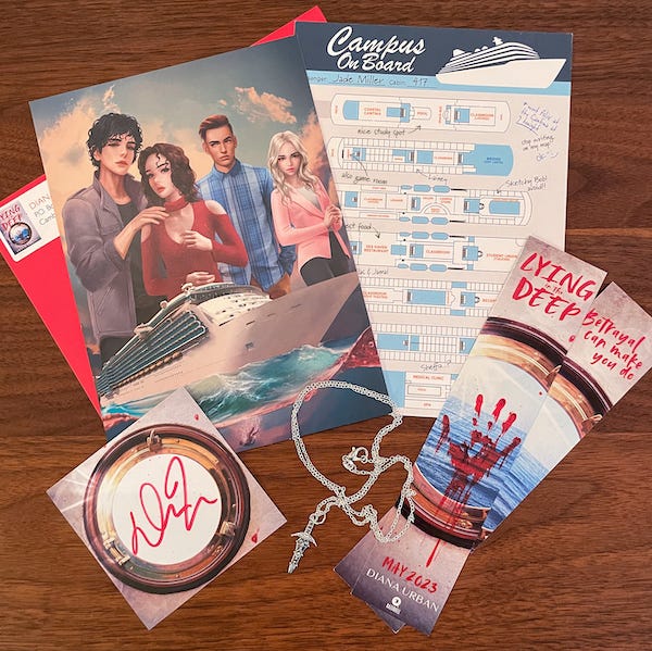 Due to rights and budgeting restrictions, the swag pack is only available to US residents (and Canadian residents if ordering through Trident). However, I’m offering a digital gift to anyone who preorders internationally or requests Lying in the Deep at their local library!