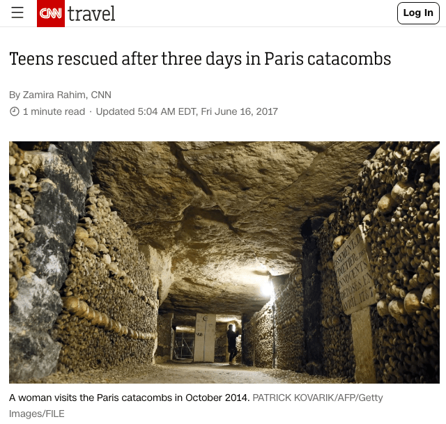 Then, in June 2017, I saw a news story about teenagers who were rescued from the Paris catacombs after being lost for three days.