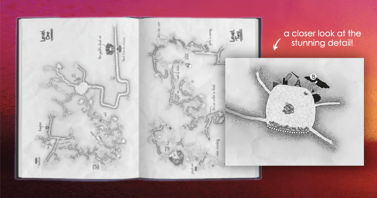 Here’s a closer look at two of the pages of the map, illustrated by Danny Ride: