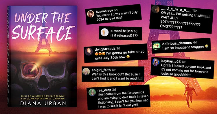 Ever since the cover reveal for Under the Surface went viral, Iâve been getting lots of questions like, âTHIS BOOK DOESNâT COME OUT UNTIL JULY????????????â Edit: Since this newsletter went out, the publication date has shifted a tad to August 13, 2024.